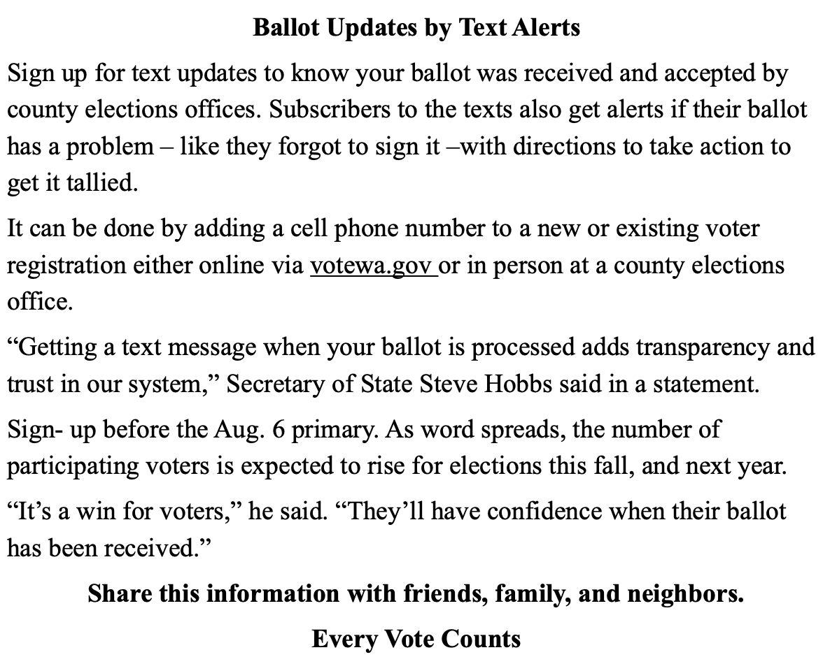 - ANYONE can get ballot updates by text alerts. Learn more →