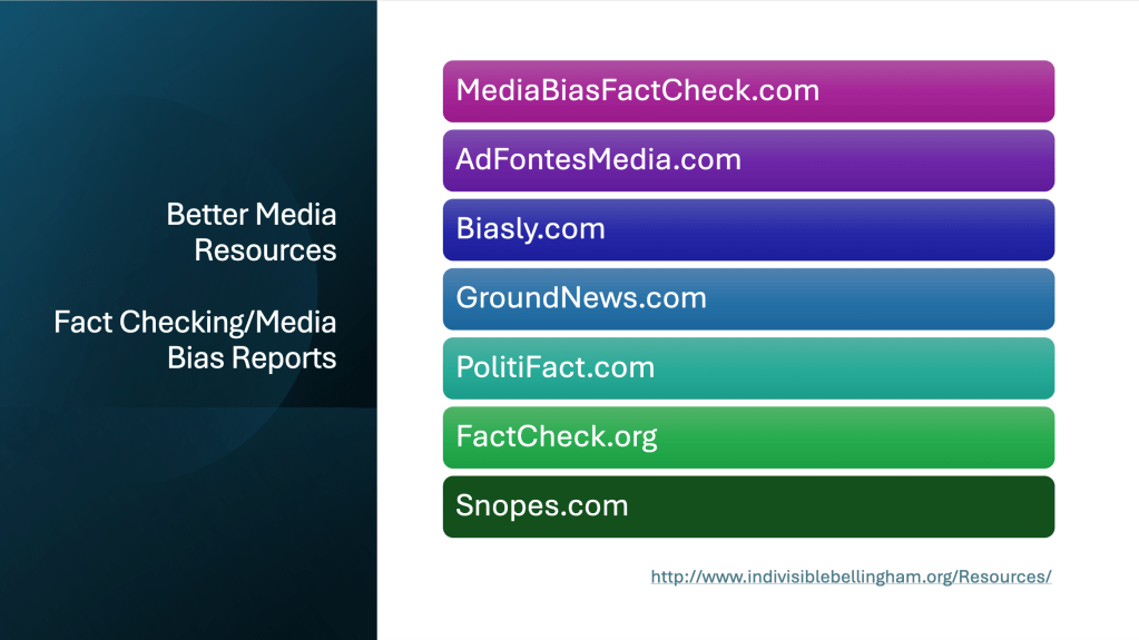 Indivisible Bellingham Recommended News and Fact Checking Sources Ad Fontes Media Media Bias Chart for August, 2025 – https://adfontesmedia.com/ Media Bias and Fact Checking Sources Share this: Click to share on X (Opens in new window) X Click to share on Facebook (Opens in new window) Facebook Like Loading...