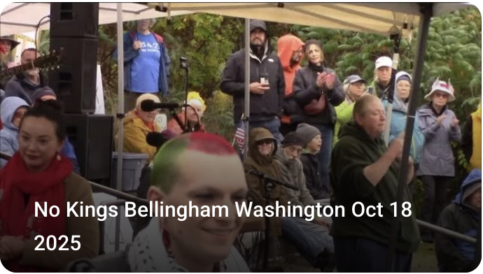 Indivisible Bellingham and 42nd LD Democrats staged a rally and event with speakers, music, and chants to show the world that we bow to NO KINGS in America.